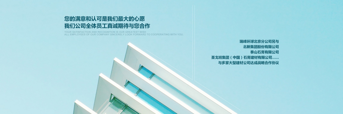 北京市朝陽區(qū)金盞鄉(xiāng)科鷹科技園內,是北京******的建材營銷商之一,專業(yè)銷售各種高檔建筑材料的現(xiàn)代化公司.本公司已與多家大型建材廠家達成合作協(xié)議:泰山石膏建材有限公司,北新建材有限公司,濱州綠邦有限公司,河北金秋有限公司,北京金隅砂漿有限公司,歐文斯科寧(中國)投資有限公司,湯姆節(jié)能建材(北京)有限公司等.更與國外泰國工廠生產的:美巖板,清水板,木絲水泥板,木紋木絲板……簽訂了國內經營權;與德國高新企業(yè)超薄石材簽屬超薄巖板國內代理權(超薄巖板,可彎曲石材,厚度1.5~2mm左右)與臺灣合作研發(fā)礦石板(以最好的效果提現(xiàn)礦石的效果).好的工程絕對少不了一個好的建筑材料,瑞峰環(huán)球攜手各大品牌為您的工程保駕護航.